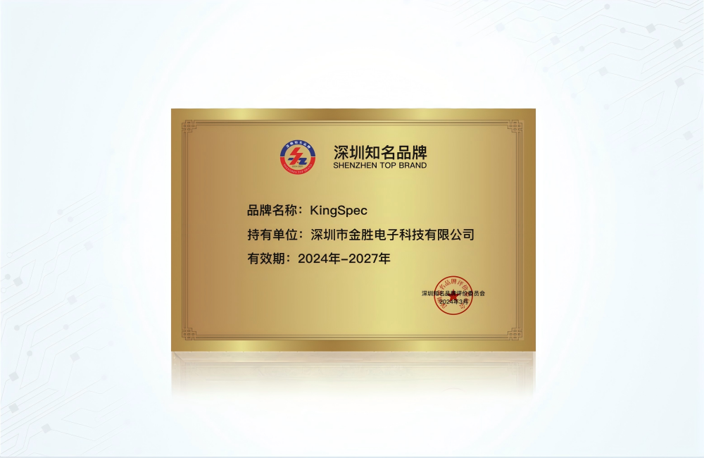 “KingSpec”榮獲第二十一屆“深圳知名品牌”稱號及“灣區(qū)知名品牌”